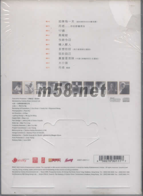 1、如果有一天(道地綠茶2003-廣告歌) 2、月老(你的野蠻男友) 3、17歲 4、今時今日 5、魚尾紋 6、情人敵人 7、多想你好(飛行服務隊主題曲) 8、忠于自己 9、真愛是苦味(卡通‘神雕俠侶’主題曲) 10、大小孩 11、月老(國語)