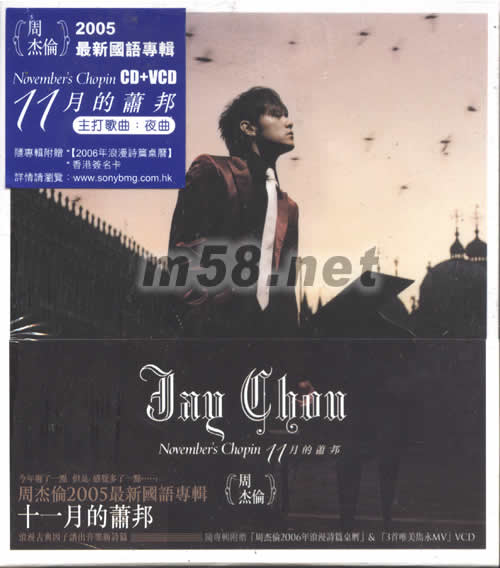 價格為估,以實到貨為準! 11月的蕭邦(香港預購限量版)(m58.net) 11月7號起本產品不接受新訂單。請改訂香港版 隨碟附贈:*2006浪漫無邊際詩篇桌歷 *香港簽名卡 預購贈品: 周杰倫威尼斯拍攝大型海報, 60×98cm超大尺寸,透明膠管包裝 膠管直徑:4CM 長度:62CM 注意:海報單寄。音樂吧將妥貼包裝,保證海報安全郵寄無壓損! 預購單:約29*10.5CM(與海報一起寄) 全亞洲千呼萬喚 「11月的蕭邦」帥氣逼人! 最新專輯威尼斯取景 周董拿出壓箱寶變幻古典造型