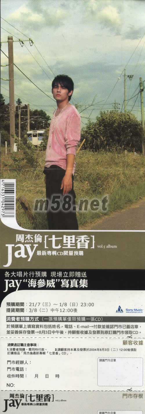 價(jià)格為估,以實(shí)到貨為準(zhǔn)! 七里香原版預(yù)購單(m58.net) 尺寸:30*10CM