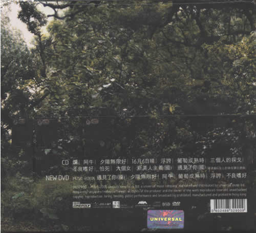 CD 01. 爛 02. 阿牛 03. 夕陽無限好 04. 16月6日晴 05. 浮夸 06. 葡萄成熟時 07. 三個人的探戈 08. 不良嗜好 09. 怕死 10. 大個女 11. 新美人主義(國) 12. 遇見了你(國)(電視劇G弦上的詠嘆調主題曲) NEW DVD MUSIC VIDEOS 01. 遇見了你(國) 02. 夕陽無限好 03. 阿牛 04. 葡萄成熟時 05. 浮夸 06. 不良嗜好