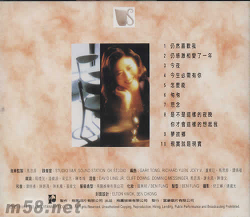 1、仍然喜歡我 2、仍感激相愛(ài)了一生 3、今夜 4、今生必需有你 5、怎么能 6、匆匆 7、思念 8、是不是這樣的夜晚你才會(huì)這樣的想起我 9、夢(mèng)故鄉(xiāng) 10、現(xiàn)實(shí)就是現(xiàn)實(shí)