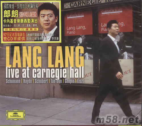 價格為估,以實到貨為準! LANG LANG-LIVE AT CARNEGIE HALL(m58.net) 國際樂壇一致推崇年輕鋼琴家朗朗引證中國人的驕傲 卡內基音樂廳轟動演出 特別推介:與父親二胡二重奏[賽馬] 送通利琴行優惠養券 97分足本現場錄音 雙CD單碟價 “無論你喜歡古典音樂否,這張CD都值得珍藏。”李克勤