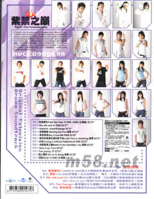價格為估,以實到貨為準! 紫禁之巔 電視原聲帶(影音精裝版)(m58.net) 加贈>>1.風云變色 2. 背影 VCD 5566 KONE TORO R&B 七朵花 21位巨星云集聯手出擊2004最轟動的偶像劇最賣座的原聲帶