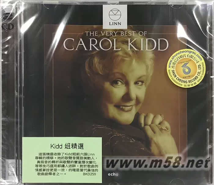 Very Best Of Carol Kidd KIDD姐精選 雙CD(m58.net) 琦姐歌唱技巧之無懈可擊,歌聲甜美,泌人心脾,最擅長慢板抒情歌曲,萬縷柔情,聽過之后難以忘懷。唱快板歌輕松耀動,令人喜悅觀騰。這張金精選CD令[蓮]唱片公司錄音科技達臻完美,通透度、人聲樂器間之準繩度及聽感之佳,難以言喻。就讓你的耳朵親自告訴你吧!