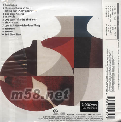 MY LIFE生命之歌SACD(m58.net) 綾戶智繪于2002年的精彩錄音,收錄多首深情作品,開首一曲‘SATISFACTION“完全展現(xiàn)了綾戶智繪的深厚唱功,樂手的一流演奏,DSD的精彩錄制,一開聲已令樂迷發(fā)燒友大呼正!”IN MY LIFE“自彈自唱出了這首真致情歌,中段的口琴更起了無形的激情作品。“YESTERDAY”以結(jié)他作引子帶出了綾戶智繪的深情歌聲,是近年難得一聽的動人版本。