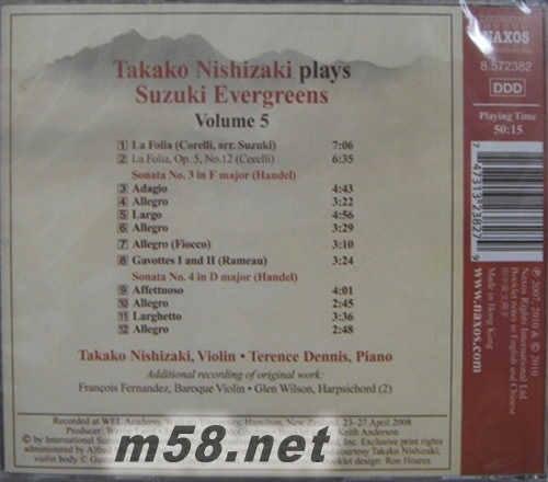 西崎崇子演奏鈴木名曲 (第五輯)(m58.net) 西崎崇子演奏鈴木名曲 Takako Nishizaki plays Suzuki Evergreens Takako Nishizaki, Violin Terence Dennis, Piano