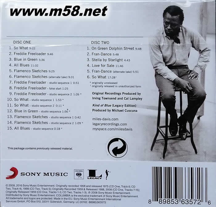 CD1 1. So What 2. Freddie Freeloader 3. Blue in Green 4. All Blues 5. Flamenco Sketches 6. Flamenco Sketches 7. Freddie Freeloader 8. Freddie Freeloader 9. Freddie Freeloader 10. So What 11. So What 12. Blue in Green 13. Flamenco Sketches 14. Flamenco Sketches 15. All Blues CD2 1. On Green Dolphin Street 2. Fran-Dance 3. Stella By Starlight 4. Love For Sale 5. Fran-Dance 6. So What