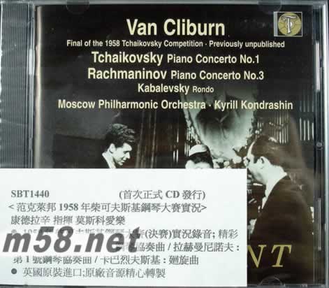價格為估,以實到貨為準! 范克萊邦1958年柴可夫斯基鋼琴大賽實況(m58.net) 柴可夫斯基:鋼琴協奏曲第1號 & 拉赫曼尼諾夫:鋼琴協奏曲第3號【1CD】 Tchaikovsky:Piano Concerto No.1 & Rachmaninov:Piano Concerto No.3 范.克萊本, 鋼琴 / 孔德拉辛指揮莫斯科愛樂管弦樂團 Van Cliburn, piano / Kyrill Kondrashin / Moscow Philharmonic Orchestra (Van Cliburn plays at the final of the 1958 Tchaikovsky Competition Previously unpublished)
