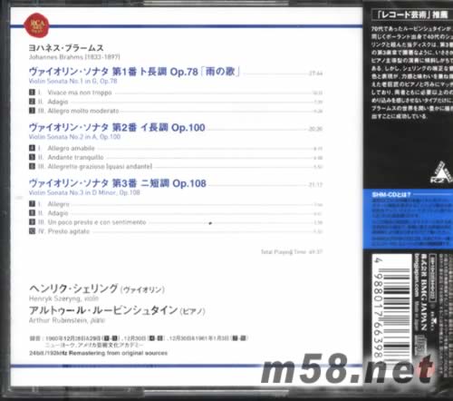 布拉姆斯小提琴協(xié)奏曲BRAHMS: THE COMPLETE VIOLIN SONATAS(SHM-CD系列日本限量版)(m58.net) 錄音于:1960年 小提琴:HENRYK SZERYNG