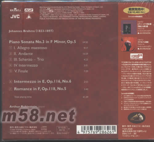 BRAHMS布拉姆斯 SONATA IN F MINOR日本版XRCD專輯背面圖片