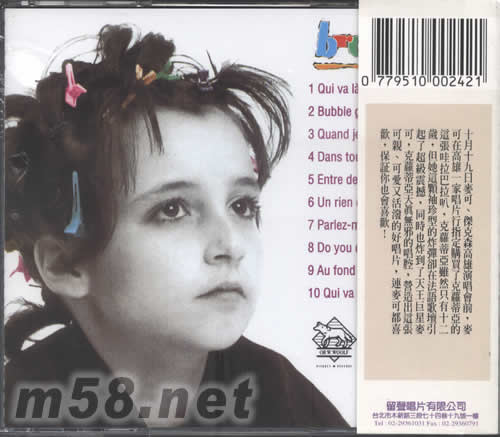 價格為估,以實到貨為準(zhǔn)! BROUHAHA哇拉巴拉叭(m58.net) 法語歌壇最可愛的小精靈,邁可杰克遜在高雄演唱會時專程買了這張唱片,你知道為什么嗎? 克蘿蒂亞雖然只有十二歲,但她這顆視珍型的炸彈動在法語歌壇引起了超級震撼!