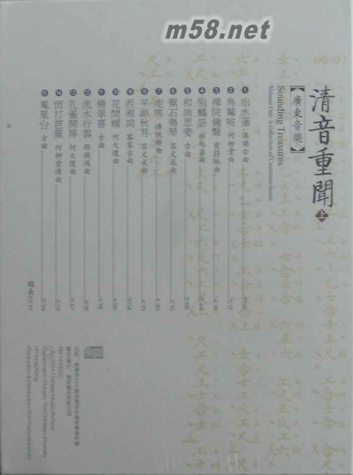 清音重聞 廣東音樂(m58.net) 香港中文大學音樂系中國音樂資料舘出版 龍音製作 附送精美小冊子介紹樂器及曲目 二零一二年,中大音樂系蔡燦煌教授發起了活化珍貴樂器的計劃,特邀余少華教授、杜泳先生、陳國輝先生、何耿明先生、陳子晉先生;蘇思棣先生、劉楚華教授及謝俊仁先生等音樂名家分別灌錄「廣東音樂」及「古琴」兩張CD,彌足珍貴!更難能可貴的,是本碟邀得師娘腔南音傳承人吳詠梅博士(梅姨)調校中國音樂資料館珍藏的兩排馬老揚琴,以灌錄唱碟,別具意義!