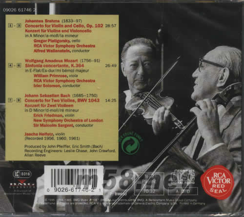 Bach Concerto For Two Violins Heifetz (海飛茲) 和Erick Friedman (弗里德曼) (CD) 2018/4/1