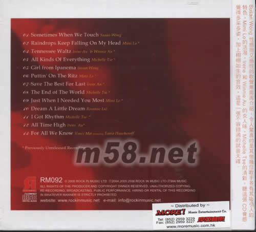 SUSAN WONG 性感而又感性的歌聲無需再介紹,令人驚喜的是其他幾位歌手各有其吸引人的特色,MIMI LO的活潑,LRENE 和WINNIE AU的女人味,MICHELLE TSE的清新,聽這張CD會感覺得多采多姿,加上栩栩如生的音效,這是一張不容錯過的試音天碟.