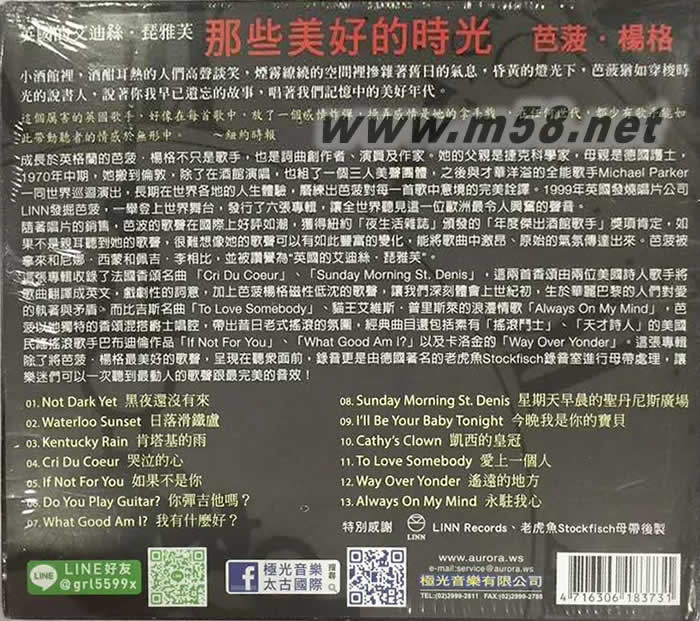 成長於英格蘭的芭菠.楊格不只是歌手,也是詞曲創作者、演員及作家。她的父親是捷克科學家,母親是德國護士,1970年中期,她搬到倫敦,除了在酒館演唱,也組了一個三人美聲團體,之后與才華洋溢的全能歌手Michael Parker 一同世界巡迴演出,長期在世界各地的人生體驗,磨練出芭菠對每一首歌中意境的完美詮譯。1999年英國發燒唱片公司LINN發掘芭菠,一舉登上世界舞臺,發行了六張專輯,讓全世界聽見這一位歐洲最令人興奮的聲音。 隨著唱片的銷售,芭波的歌聲在國際上好評如潮,獲得紐約「夜生活雜誌」頒發的「年度杰出酒館歌手」獎項肯定,如果不是親耳聽到她的歌聲,很難想像她的歌聲可以有如此豐富的變化,能將歌曲中激昂、原始的氣氛傳達出來。芭菠被拿來和尼娜.西蒙和佩吉.李相比,並被讚譽為“英國的艾迪絲.琵雅芙”。 這張專輯收錄了法國香頌名曲 「Cri Du Coeur」、「Sunday Morning St. Denis」,這兩首香頌由兩位美國詩人歌手將歌曲翻譯成英文,戲劇性的詞意,加上芭菠楊格磁性低沈的歌聲,讓我們深刻體會上世紀初,生於華麗巴黎的人們對愛的執著與矛盾。 而比吉斯名曲「To Love Somebody」、貓王艾維斯.普里斯萊的浪漫情歌「Always On My Mind」,芭菠以她獨特的香頌混搭爵士唱腔,帶出昔日老式搖滾的氛圍,經典曲目還包括素有「搖滾斗士」、「天才詩人」的美國民謠搖滾歌手巴布迪倫作品「If Not For You」、「What Good Am I?」以及卡洛金的「Way Over Yonder」。這張專輯除了把芭菠.楊格最美好的歌聲,呈現在聽眾面前,聲音更是由德國著名的老虎魚Stockfisch錄音室進行母帶處理,讓樂迷們可以一次聽到最動人的歌聲跟最完美的音效!