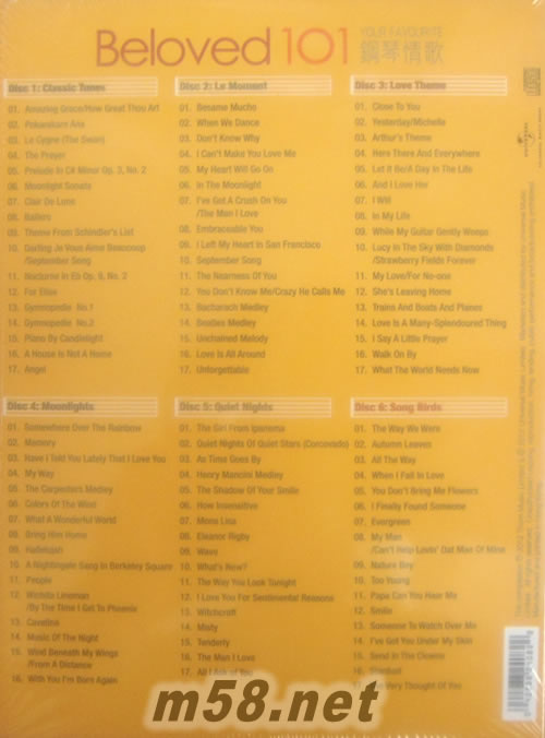 BELOVED 101 鋼琴情歌 101 套裝(m58.net) 101首浪漫鋼琴情歌 古典、拉丁、流行之黃金經典 6CD超值聽覺享受