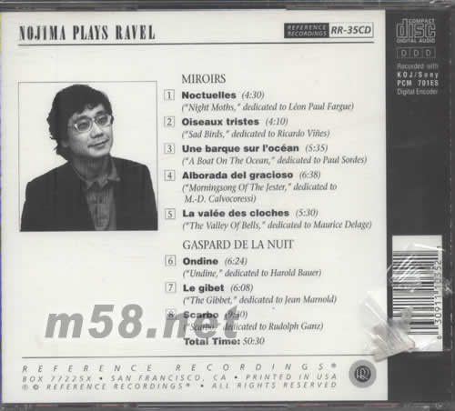 拉威爾發(fā)燒版鋼琴作品選NOJIMA PLAYS RAVEL專輯背面圖片