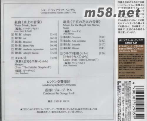 亨德?tīng)?水上音樂(lè) 皇家焰火 賽爾指揮 HANDEL: WATER MUSIC|ROYAL(SHM-CD 日本版)(m58.net) 指揮:GEORGE SZELL 錄音于:1961年