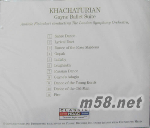 哈察都量 蓋奴芭蕾組曲Khachaturian: Gayne Ballet Suite HDAD專輯背面圖片