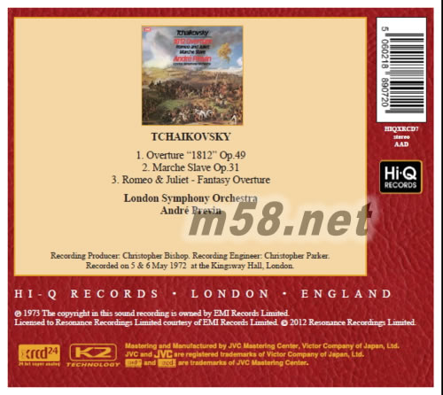 Andre Previn - Tchaikovsky:1812 Overture柴可夫斯基:1812序曲-羅密歐與茱麗葉 XRCD專(zhuān)輯背面圖片