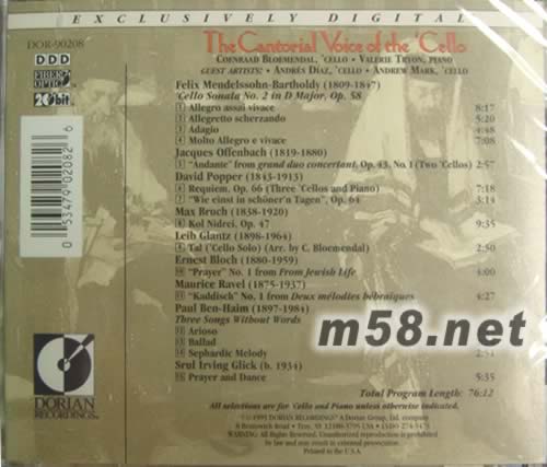 猶太大提琴THE CANTORIAL VOICE OF THE CELLO(m58.net) 曾被指定為測試系統重播大提琴質量的一張試音碟,DORIAN以完美的手法,打造出完美無瑕的效果。大提琴散發豐厚綿密的音質,琴音的所有細節巨細靡遣。 特洛伊儲蓄銀行寬闊的音場與極佳的定位,琴音的流更是活生感干足,如果您少了這張CD那真是人生一大遺憾!曾被指定為測試系統重播大提琴質量的一張試音碟,DORIAN以完美的手法,打造出完美無瑕的效果。大提琴散發豐厚綿密的音質,琴音的所有細節巨細靡遣。 特洛伊儲蓄銀行寬闊的音場與極佳的定位,琴音的流更是活生感干足,如果您少了這張CD那真是人生一大遺憾!