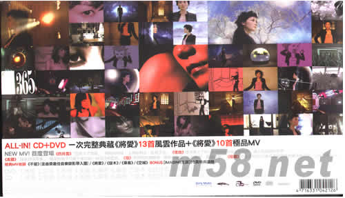 將愛 'All-In' (DVD+CD) (特別典藏版)(m58.net) 風風火火 轟轟烈烈 ALL IN!史上首次最高榮耀金曲獎7大獎項8項入團 最佳國語女演唱人/最佳專輯/最佳制作/最佳作曲/最佳作詞/最佳編曲/最佳MV ALL IN!CD+DVD一次完整典藏《將愛》13首風云作品+《蔣愛》10首仍品MV NEW MV!首度登場《四月雪》[忽然下了雪霜]開始的時候,上帝說有光,就有了光、、、《夜狀》誰為誰上了狀?跨過真實與虛似的邊界,進入點唱機的世界、、、 《美麗》[讓我感情用事]:簡絮到幾乎只剩下黑白與一抹冷冷的藍色、、、《煙》辛辣的大塊顏色,燥熱的夏夜,心急難耐,蠢蠢欲動、、、《陽寶》穿插王菲2003香港演唱會幕前幕后的花絮,LIVE的先看版、、、 經(jīng)典MV收錄《不留》(金曲獎最佳錄音錄影帶入團)/《將愛》/《旋木》/《乘客〉/〈空城〉/BONUS[IMAGING王菲]20頁特典團冊