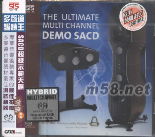 多聲道監聽王SACD超級示范天碟(m58.net) HIGH-END AUDIOPHILE TEST DEMO SACD 專業鑒聽專家的最佳拍檔 調校音響器材之最佳利器 小心調校音量:一張了不起的兩聲道及多聲道SACD音樂軟件,內裹潛藏著無比細致之分析度及驚人的重播動態,播放時敬請小心音量,勿讓它損壞閣下昂貴的揚聲器系統! 改善器材狀態:這張SACD可以改善及調較揚聲器的重播水平,達至最佳的狀態,從而令你可感受到每段錄音的精確度及定位能力,這種傳神而逼真的效果,是你聽得到跟在錄音室所聽到的都是一樣。 魚聲或多聲道播放:播放這張SACD時,若選用多聲道重播時,請安座于五聲道揚聲器的中央位置進行聆聽,可以得到最佳聲響效果。本SACD無論是處于兩聲道或是多聲道重播下,都能帶給你有截然不同的聆聽效果,因為在兩聲道或多聲道都經STS Digital錄音師精心獨立灌錄,絕非同類產品只作后期聲道分拆處理,因此當選擇于兩聲道下聆聽,亦能體會這舉世無雙的超級發燒錄音制作及感覺現場一樣的高科技環境聲效。 專輯內容:一張令你引頸期待的多聲道綜合式示范測試軟件《多聲道鑒聽王》超級SACD示范天碟,全碟使用真實樂器及真實聲效錄制,透過約70分鐘多元化音樂及聲響,由最高至最低頻響和動態,只需配搭上SACD/CD*播放機播放,對前、中、后及超低音揚聲器均可達至最佳狀態,發揮最高重播質素,對測試及改善閣下之音響器材都有正面效用。本專輯收錄31首多元化歌曲,包括人聲、合唱、爵士音樂、古典音樂,敲擊、各類型測試樂器及環境聲效作為主要重播內容。本SACD進行錄音時,錄音師悉心記錄下每段錄音的特別之處,讓聆聽者可在本專輯小冊子內尋找出每首歌曲的位置,再從位置中了解出使用中器材的分析力及重播能力,能否可達到本專輯的最基本重播要求,如果未能分析出小冊子上所提及的摘要,出版商建議閣下有需要將器材重新調校、移動位置、改善聆聽空間或有需要升級現有的音響器材! 當使用CD播放機重播時,只能作為兩聲道播放或測試。