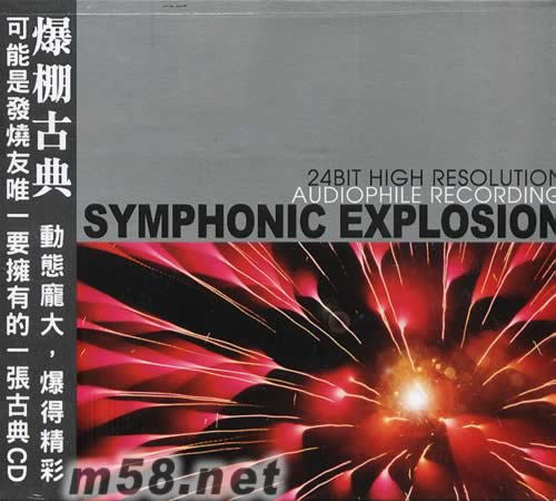 Symphonic Explosion 爆棚古典(m58.net) 爆棚古典 動態龐大,爆得精彩 可能是發燒友唯一要購買的一張古典CD 這是以發燒友為對象的一張古典精選,所挑選曲目以動態龐大,爆得精彩的交響樂為主,其中包括了「畫展」,「荒山之夜」,「輕騎兵序曲」,「新世界交響曲」,「貝多芬第五交響曲」亦加插了低頻王Toccata And Fugue in D Minor,超過一個小時的音樂假如全都是爆到七彩,肯定令人頭昏腦脹,這張CD巧妙地在其中加入多首非古典迷 也會十分熟悉的抒情樂章,令到全張CD聽來更有娛樂性,對於發燒友,這可能是最爆得最富娛樂性的古典CD