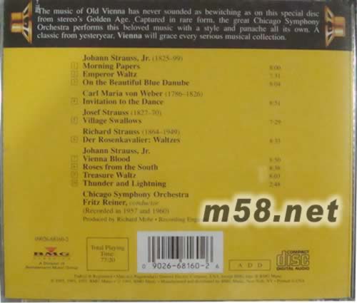Johann strauss.Jr.(1825-99) 1. Morning Papers 2. Emperor Waltz 3. On The Beautiful Blue Danube 4. Carl Maria Von Weber: Invitation To The Dance 5. Carl Maria Von Weber: Village Swallows 6. Der Rosenkavalier: Waltzes 7. Vienna Blood 8. Roses From The South 9. Treasure Waltz 10. Thunder And Lightning Chicago cymphony orchestra fritz reiner,conductor