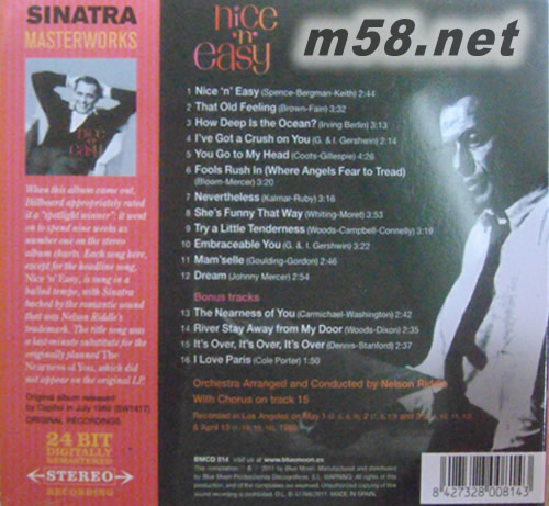 1. Nice 'N' Easy (1999 Digital Remaster) 2:45 2. That Old Feeling (1999 Digital Remaster) 3:32 3. How Deep Is The Ocean? (1999 Digital Remaster) 3:15 4. I've Got A Crush On You (1999 Digital Remaster) 2:15 5. You Go To My Head (1999 Digital Remaster) 4:28 6. Fools Rush In (1999 Digital Remaster) 3:22 7. Nevertheless (I'm In Love With You) (1999 Digital Remaster) 3:18 8. She's Funny That Way (1999 Digital Remaster) 3:54 9. Try A Little Tenderness (1999 Digital Remaster) 3:22 10. Embraceable You (1999 Digital Remaster) 3:24 11. Mam'selle (1999 Digital Remaster) 2:48 12. Dream (1999 Digital Remaster) 2:57 13. The Nearness Of You (1999 Digital Remaster) 2:43 14. Someone To Watch Over Me (2000 Digital Remaster) 2:57 15. Day In - Day Out (Alternate Version) (1999 Digital Remaster) 3:07 16. My One And Only Love (1999 Digital Remaster)