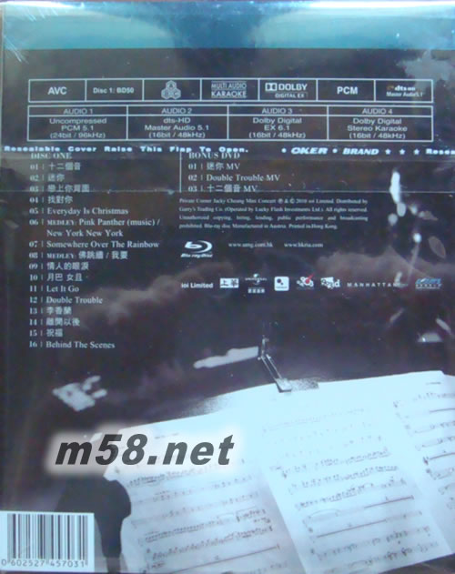 DISC ONE 01. 十二個音 02. 迷你 03. 戀上你背面 04. 找對你 05. Everyday is Christmas 06. Medley : Pink Panther(music)/New York New York 07. Somewhere Over the Rainbow 08. Medley : 佛跳墻/我要 09. 情人的眼淚 10. 月巴 女且 11. Let It Go 12. Double Trouble 13. 李香蘭 14. 離開以后 15. 祝福 16. Behind the Scenes Bonus DVD 01. 迷你 MV 02. Double Trouble MV 03. 十二個音 MV