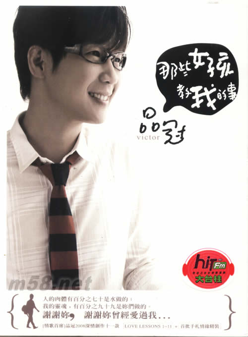 那些女孩教我的事(首批手札情緣精裝版)(m58.net) 品冠的11個女人/情歌的11個天堂 愛情是信仰或只能是旅途風光 那女孩帶我漫游一次天堂 PS.如果剛好妳現在也在聽著品冠﹐妳一定知道:對妳我有多麼念念不忘… ■五月天阿信2008第一首情詩經典[那些女孩教我的事] 特寫品冠才有的純愛﹐奉獻給他心目中的亞洲第一男中音 ■金曲獎才女戴佩妮第一次唱作雙飛[半生熟] 品冠作曲+PENNY作詞﹐創作女聲戴佩妮與品冠合力製作本年度 最甜美男女對唱。 ■不只唱得那麼品冠﹐加倍創作另一個品冠 [漂流]+[最好的朋友]+[現在就想見的人]+[半生熟]品冠創作四連發﹐ 難得有情人﹐男得更夠味。 ■ 阿信+阿弟仔+林邁可+朱敬然 四大男性製作人毫不手軟﹐逼供品冠從來說不出口的內心深處 ■馬毓芬+戴佩妮+DJ阿娟+丁噹 四位女性音樂人柔情萬種﹐作伴品冠出道以來最高”男”度表現