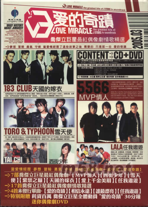 價(jià)格為估,以實(shí)到貨為準(zhǔn)! 愛(ài)的奇跡喬杰立巨星最紅偶像劇情歌情選(m58.net) 特別附贈(zèng) 耗資百萬(wàn) 喬杰立巨星全體動(dòng)員"愛(ài)的奇跡"30分鐘迷你偶像劇DVD