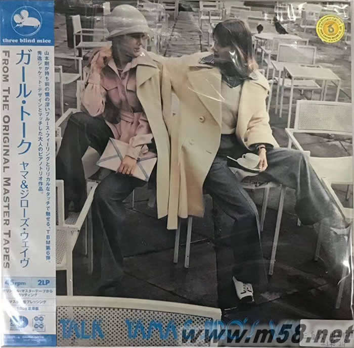 Girl Talk 三盲鼠 爵士鋼琴三重奏 (鋼琴、貝斯、鼓) 180g 45RPM LP 雙黑膠(m58.net) TSUYOSHI YAMAMOTO 鋼琴 ISOO FUKUI BASS貝斯 TETSUJIRO OBARA 爵士鼓 這張名為「Girl Talk」的專輯就如它的名稱一樣,七首歌曲都是這種美得無法自拔的慢板,擔任鋼琴的隊長山本剛對於這些音樂有它非常獨到的見解,你會發覺到音樂中的頹靡味變成灑脫的效果,加上他一貫華麗的觸鍵,讓這些曲子成為最耐聽的小品。 曲子中除了第一首「追憶」最為人稱道之外,「亂世佳人」、「I love You,Porgy」也是經常演出的曲子之一,1975年錄音時,當時這三位演奏家都還是爵士新鮮人,不過從音樂中你完全聽不出任何生疏之感。樂器定位明確清晰,鋼琴顆粒逼真的優秀錄音。