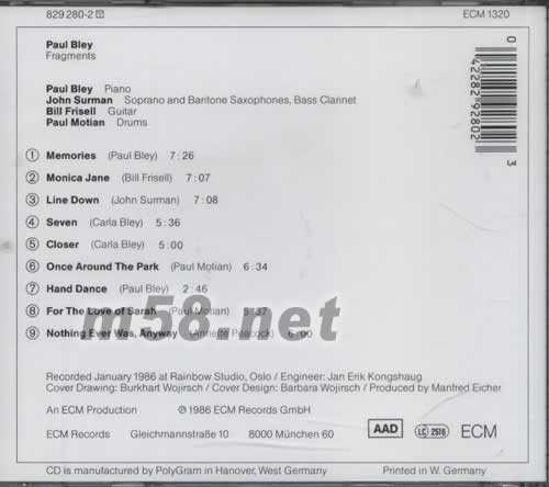 FRAGMENTS PAUL BLEY專輯背面圖片
