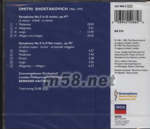 SHOSTAKOVICH蕭斯塔科維奇第5&9交響曲(m58.net) 指揮:BERNARD HAITINK