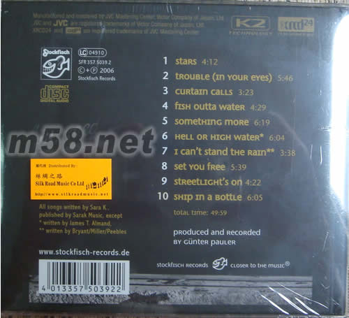 赴湯蹈火 HELL OR HIGH WATER XRCD(m58.net) 殿堂級發燒天后莎拉.K(Sara.K)以溫醇磁性的歌聲、引人入勝的演繹、出神入化的結他演奏技巧等等贏盡無數樂迷的歡心,在她過往20多年的唱作生涯中,創作的名曲多不勝數,2009年莎拉.K毅然告別樂壇,將她如日中天的音樂事業畫上休止符。與發燒錄音名牌<老虎魚(Stockfisch)>合作接近10年,共同創造出無數的發燒經典,征服了世界各地的發燒友,<老虎魚>2007年為莎拉.K所推出的《赴湯蹈火(Hell or High Water)》由日本JVC公司開發的XRCD版本而大獲好評,深受高級音樂界的認同,至今亦常以此專輯的不同格式作大比併,人聲透徹、結他弦聲利落清脆,達至最高境界的音效,人聲與結他聲更為立體剔透。現徇眾要求限量再版推出200張,先前錯過了的你,趕快行動吧 !
