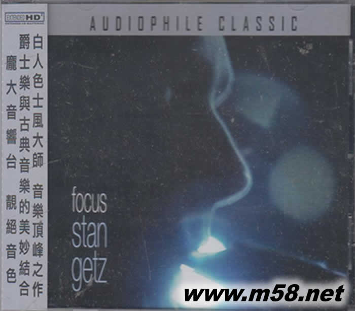 Focus 音樂頂峰之作(薩克斯)HDCD(m58.net) 白人色士風大師Stan Getz,音樂頂峰之作, 爵士樂與古典音樂的美妙結合, 龐大音響臺 靚絕音色 Stan Getz最受歡迎的專輯當然是Getz Gilberto,但對於他本人,這張Focus才是他最喜愛的,而樂評界亦普遍認為Focus是其音樂生涯的最高峰,Getz Gilberto主要是一些旋律簡單甜美的小品,Stan Getz這位最偉大的白人色士風大師其實並無太多發揮空間,focus則是由他構思整個創作過程,他找來了最欣賞的作曲家Eddie Sauter創作了完整樂章的弦樂部分,Stan Getz要自己在sauter的音樂中找出可以加入他即興演奏的空間,Sauter的弦樂有濃烈的古典音樂色彩,Stan Getz即興演奏卻是爵士樂風格,這是高層次的音樂結合,但效果絕不故作高深,無論是音樂或是演奏都是十分優美悅耳,從這個專輯可以聽到音樂史上其中一個最偉大色士風大師頂峰演出,發燒友或會問音效如何,答案是100%靚聲,相比Focus龐大音響臺的氣勢,Getz Gilberto是絕對欠奉的,Stan Getz的吹奏亦更揮灑自如,精彩豐富。