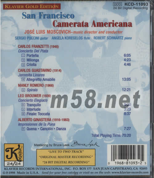 美國卡門 吉它長笛鋼琴協奏曲專輯背面圖片