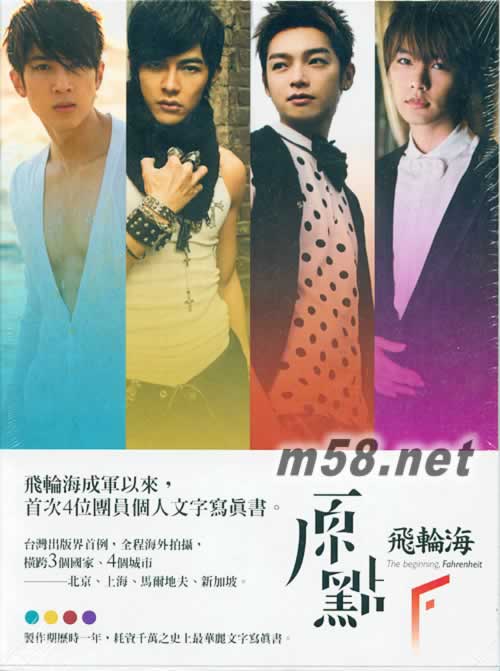 原點(diǎn) 寫真書(m58.net) 飛輪海成軍以來,首次4位團(tuán)員個(gè)人文字寫真書。 臺(tái)灣出版界首例,全程海外拍攝,橫跨3個(gè)國(guó)家、4個(gè)城市——北京、上海、馬爾地夫、新加坡,制作期歷時(shí)一年,耗資千萬完成史上最華麗文字寫真書。 本書〈一套4本,不分開販?zhǔn)郏瑫泻涎b〉,不同于飛輪海以往的寫真書,這次4位團(tuán)員每人獨(dú)立各一本,分別于不同城市及國(guó)家拍攝,更加顯現(xiàn)4人絕對(duì)不同的性格及特色。 除了全程海外拍攝的照片外,書中更有發(fā)自心底、從未出版過的成員故事及內(nèi)心獨(dú)白,完整收錄你所不知道的出道前的飛輪海:包括自己的原點(diǎn)、小時(shí)候的故事、生命中遇到的快樂與不快樂、現(xiàn)在的自己,以及對(duì)未來的自己的期許。