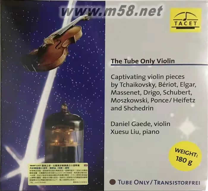 丹尼爾·蓋德 & 劉學(xué)述 - 真空管麥克風(fēng)之小提琴篇 180g 33RPM LP 黑膠(m58.net) Tacet為拉丁文“沉默的”,也就是不與別人做同樣的事,亦即Tacet是杰出且與眾不同的。Tacet的創(chuàng)建者是德國有名的錄音專業(yè)教授,他創(chuàng)立這一家公司就是想表現(xiàn)最高技藝的音響效果,全部專輯都是選用最專業(yè)的器材、聘請最專業(yè)的工程人員及最優(yōu)秀的音樂家完成的,所以Tacet所出產(chǎn)的音樂產(chǎn)品是發(fā)燒友測試音響及聆賞音樂非常好的選擇。 Tacet這家公司在業(yè)界以真空管麥克風(fēng)錄音著名,很多樂友在買了Tacet的音樂專輯之后,均訝異Tacet竟能以很多比我們年紀還大的古董級的真空管麥克風(fēng),錄下這么富有甜美光澤的古典及爵士音樂,以至于在1994-1996年的時候,港臺地區(qū)均刮起一陣Tacet發(fā)燒旋風(fēng),眾發(fā)燒友的發(fā)燒收藏榜單之中如果沒有一張Tacet的專輯,那么很有可能會被認為發(fā)燒友的資歷及對唱片市場生態(tài)的熟悉度有限。 本張《真空管麥克風(fēng)之小提琴篇》限量版LP黑膠碟的聲音醇美厚實,是用名聲響亮的Neumann M49、U47真空管麥克風(fēng)來錄音,再由真空管來放大訊號,最后呈現(xiàn)出自然真實、靚絕通透的細致音色。丹尼爾?蓋德(Daniel Gaede)憑借他高超的技藝和體善人心的風(fēng)范,獻上了一張獨一無二的傳奇巨作! 丹尼爾?蓋德和鋼琴家劉學(xué)述(Liu Xuesu) 以及波蘭國家交響樂團天衣無縫的默契配合,再加上拉伊斯基 (Wojciech Rajski)的指揮,和空氣感十足的錄音效果,將真空管的優(yōu)點顯露無遺。里面的小提琴的錄音真是靚到無法形容,弦樂像涂了一層蜜糖似的,甜美甘醇,優(yōu)雅華貴還不足以形容它們的特色,看它們的空氣感多好,余韻裊裊,喜歡小提琴音樂的朋友千萬不要錯過。