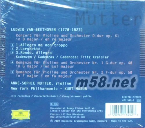 BEETHOVEN VIOLIN CONCERTO ROMANCES 貝多芬:小提琴協奏曲 穆特(m58.net) 伴奏:NEW YOURK PHILHARMONIC 指揮:KURT MASUR