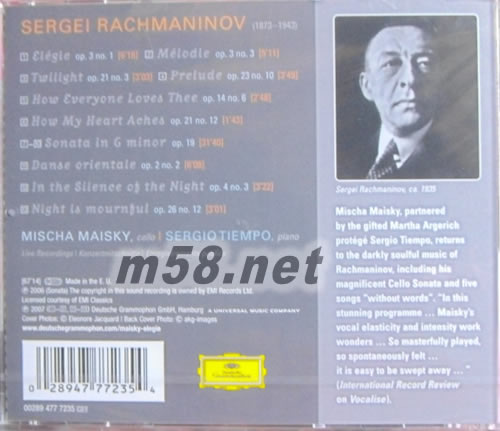 RACHMANINOV ELEGIE 拉赫瑪尼諾夫 悲歌 大提琴與鋼琴專輯背面圖片
