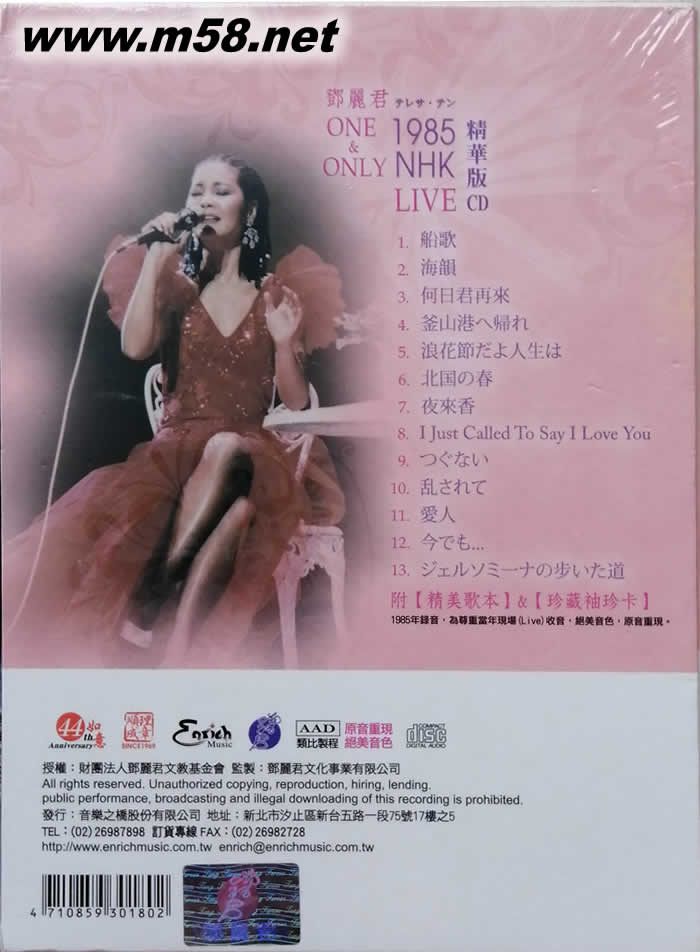 這次演唱會是鄧麗君在日本最盛大的一次個人演唱會,演唱會定名為ONE AND ONLY卻造成了未唱先轟動,門票亦在短短三日內銷售一空,由於歌迷熱情的支持與愛護,更讓日本製作公司耗資龐大的費用在舞臺燈光服裝樂隊等硬體上,而鄧麗君也在此次不斷地與髮型及服裝設計師溝通,希望能以不同的造型呈現在歌迷眼前,在日本的這短期間鄧麗君才了解整體表演的意義,他認為過去唱歌只想把歌唱好,不敢過分發揮自己,而今他學會了開放自己且盡情表現,更懂得收放自如,秀出自己的品味,亦使得鄧麗君日本東京NHK演唱會畫下完美的句點,然而令人感慨的是,當時她們將演唱會定名為ONE AND ONLY,沒想到卻一語成讖,這場演唱會真的成了唯一的一次,另大家無限遺憾。