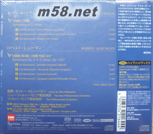 法蘭克 D小調交響曲 舒曼 D小調第四號交響曲 Franch Symphony In D minor Schumann Symphony No.4 SACD 日本精裝限量版專輯背面圖片
