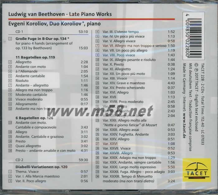 CD1 1. 1 Grose Fuge in B-Dur op. 134 for piano 4 hands 2. 2-12 11 Bagatellen op. 119 3. 13-18 6 Bagatellen op. 126 CD2 1. 1-34 Diabelli-Variationen op. 120
