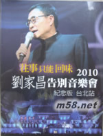 往事只能回味 2010劉家昌告別音樂會紀念版 臺北站 (DVD)(m58.net) 在往事只能回味的歌聲中,回味往事,劉家昌的生命,跟音樂緊緊相連。音樂大師劉家昌:「我第一首歌是18歲寫的,還沒有走過人生路,還沒有經過人生苦,怎麼寫的調子會是悲的,那可能你天生就是,悲劇的角色。」 不但自己會寫會唱。 劉家昌說:「那是在最困頓潦倒的時候,作品會有感情那是真的?!箮缀?7、80年代,每一個當紅歌手都唱過劉家昌所寫的情歌。劉家昌的音樂,感動了好幾個世代的歌迷。 2006年6月,劉家昌于香港舉行《往事只能回味:劉家昌音樂會》,反應熱烈。2007年4月8日晚,北京第7屆音樂風云榜頒獎盛典上,劉家昌獲頒終身成就獎。2010年4月3日、4月4日,在臺北小巨蛋,舉辦《往事只能回味:劉家昌音樂會》,特別嘉賓包括甄妮、劉子千、林靈、江蕾,張敬軒及蕭敬騰等。