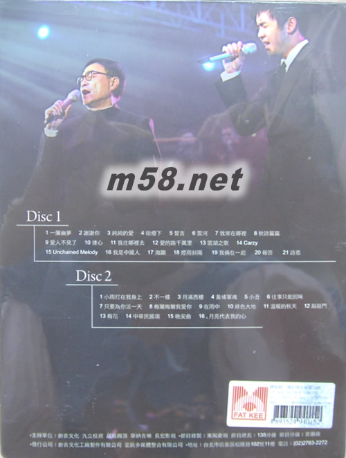 DVD 1 01. 一簾幽夢 02. 謝謝你 03. 純純的愛 04. 街燈下 05. 誓言 - 甄妮 06. 云河 - 甄妮 07. 我家在那里 - 劉家昌/甄妮 08. 秋詩篇篇 - 劉子千 09. 愛人不見了 - 劉子千 10. 連心 - 劉家昌/劉子千 11. 我往那里去 12. 愛的路千萬里 13. 云湖之歌 - 星云大師詞,劉老師曲, 獻給佛光山的歌 14. Crazy 15. Unchained Melody 16. 我是中國人 17. 海鷗 - 江蕾 18. 煙雨斜陽 - 江蕾 19. 我倆在一起 - 劉家昌/江蕾 20. 報答 21. 詩意 DVD 2 01. 小雨打在我身上 - 特別嘉賓 02. 不一樣 - 特別嘉賓 03. 月滿西樓 - 特別嘉賓 04. 黃埔軍魂 05. 小丑 06. 往事只能回來 - 林靈 07. 只要為你活一天 - 林靈 08. 梅蘭梅蘭我愛你 - 特別嘉賓/林靈 09. 在雨中 - 劉家昌/林靈 10. 綠色大地 - 特別嘉賓 11. 溫暖的秋天 - 特別嘉賓 12. 敲敲門 - 特別嘉賓 13. 梅花 14. 中國頌 15. 晚安曲 16. 月亮代表我的心