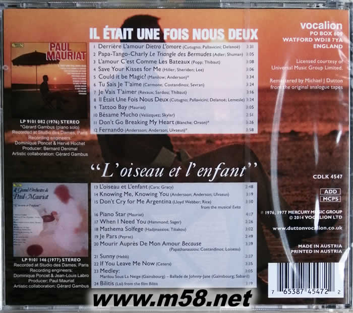法式浪漫情感 IL ETAIT UNE FOIS NOUS NEUX專輯背面圖片
