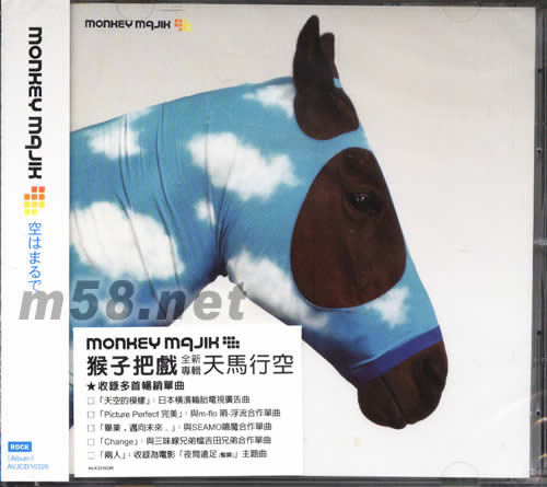天馬行空(臺灣版)(m58.net) 由加拿大兄弟Maynard(主唱&吉他)與Blaise(主唱&吉他),搭配日本籍的tax(鼓)和DICK(貝斯)組成,以日本仙臺為活動出發地的「MONKEY MAJIK 猴子把戲」,推出最新原創專輯「天馬行空」。專輯中收錄多首暢銷單曲& Tie-up曲:☆「天空的模樣」:橫濱輪胎電視廣告曲,并榮登日本有線排行榜冠軍寶座!!!☆「Picture Perfect完美」:與m-flo 隕-浮流合作單曲☆「畢業,邁向未來?!梗号cSEAMO嘻魔合作單曲☆「Change」:與三味線兄弟檔吉田兄弟合作單曲☆「兩人」:收錄為電影「夜間遠足(暫譯)」主題曲。日本推出首週即搶進ORICON專輯排行榜第3名!